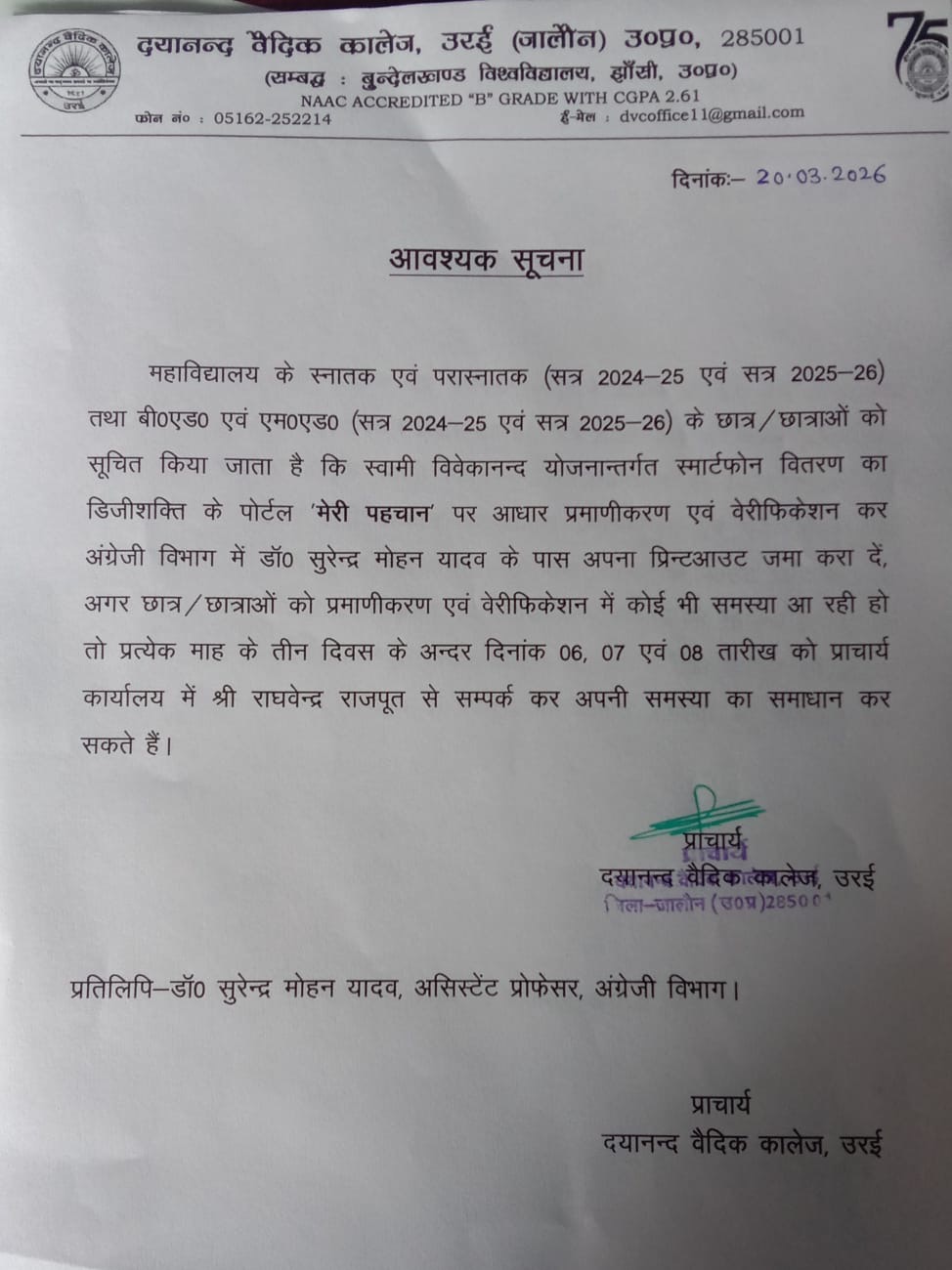 एम.ए. हिन्दी महाकवि अवधेश स्वर्ण पदक (2023-24), बुंदेलखंड विश्वविद्यालय, झाँसी